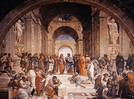 《雅典学院》,意大利画家拉斐尔于1510~1511年创作的一幅壁画作品。现珍藏于意大利梵蒂冈博物馆。 荷兰历史学家约翰·赫伊津哈(Johan Huizinga)写道:“一听到‘文艺复兴’这个词,留恋昔日之美的幻想家,眼前便一片流光溢彩。”是啊,文艺复兴是一个 在思想范畴多么百花齐放、百家争鸣的时期。 这个时期,不只有“新世纪的第一位诗人”但丁写下《神曲》;也有著名作家、诗人薄伽丘以故事集《十日谈》留名后世。米开朗琪罗的《大卫》诉说着人体的蓬勃生命力;达·芬奇的《蒙娜丽莎》眼中尽是说不清道不明的脉脉柔情。 一切这些文学、艺术、思想,乃至科学范畴的杰作集聚一堂,凝成了一幅幅 承载着创意与文化的黄金时期画卷。