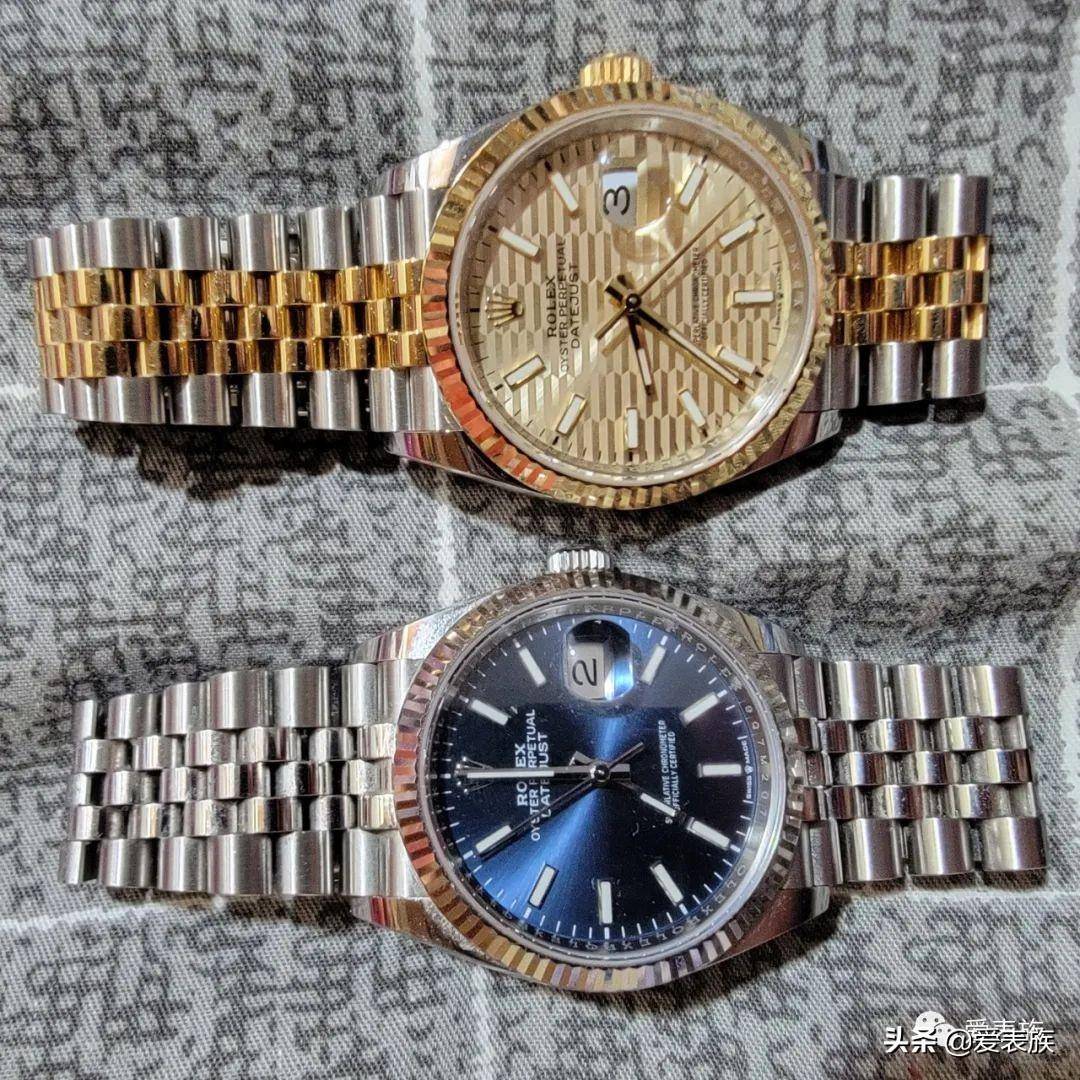 2020到2022是我买表的第二个高峰期当ROLEX间金日志的到手也意味着我腕表时期的毕业。我在2020年买了ROLEX DJ蓝盘36mm DJ(66400元) 接着买了德国NOMOS(17200),日本SEIKO 鸡尾酒绿盘(2699元)接着是由于我喜欢的人戴的是CARTIER TANK所以我也入了一块。最后那块就是我的腕表毕业款2021年瑞士巴赛尔新款格子纹面间金ROLEX 日志36MM(93500元) 谈谈我从27岁腕表以来关于以劳力士为代表的腕表品牌态度的转变。 一开端我是很厌恶劳力士这牌子的,外型老气,黑绿水鬼俗气,大金劳更是俗不可耐。劳力士的品牌的概念和1:中年油腻:2:没文:3:爆发户。我心中位置高的腕表品牌是JLC. 宝珀,宝玑,雅克德罗,VC,PP这样的.所以在购表的第一阶段买到了瑞士老的四大机芯消费厂牌真力时,当时是窃以为戴她就是小众高雅有品位卓尔不群。1980年出生的我属猴似乎是庚申金猴。时过境迁岁数渐大,我越来越喜欢劳力士。买手表牌子牌子还是牌子。劳力士就是世界钟表界的首相,功高盖主,呼风唤雨。2020年买了蓝盘日志为啥还要买间金的呢。由于既然都劳力士了还要什么低调?金子钻石都上来吧。再说劳力士专业为劳动人民制表,为了耐操,防水,抗磁还做密底的。
