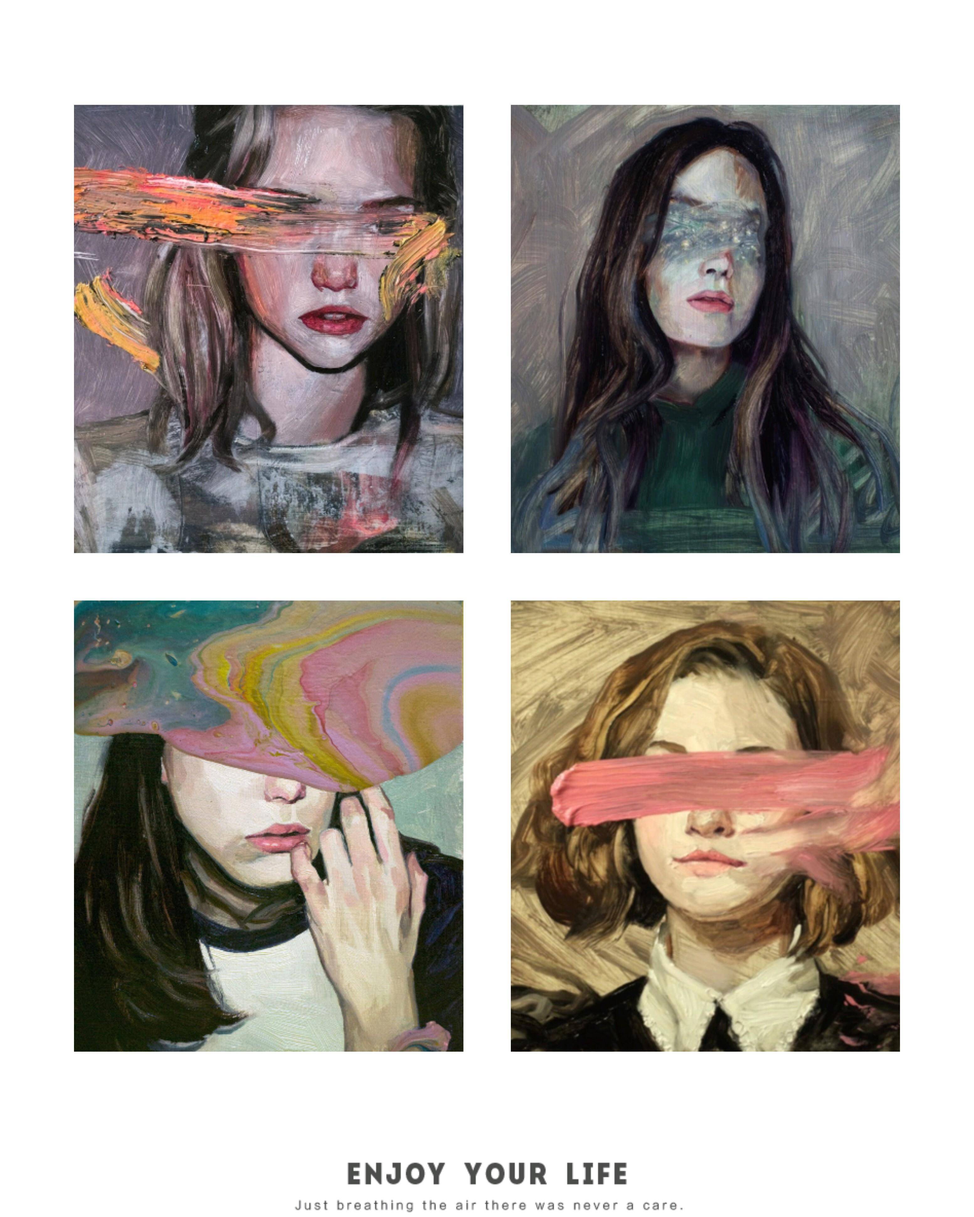影片中的肖像从阅历了从“傻白甜”到温柔但坚毅、隐忍的变更,是画家真正了解画中人的写照。 重绘海报中固然也是油画,却和端庄的古典肖像画的观感截然不同,像是迎面吹来一阵傲然的风。画面整体的冷颜色让画面显得愈加严肃,左上角的涂抹和脸上以及手臂上方的笔触增强了动感,右下角嶙峋的背景加重了画面的纹理感。固然手指的细节不甚明晰,但烘托出裙子褶皱惊人的精密水平。 当然,最引人注目的还是那道直接划在脸庞上的颜料。它由白、黄、红三色构成,为的是调出淡淡的粉红作为皮肤的颜色。 其实,在肖像的脸上特别是眼部中止涂抹是画家埃莱娜·德尔迈耶的个人特征,她曾创作了许多这样的作品。