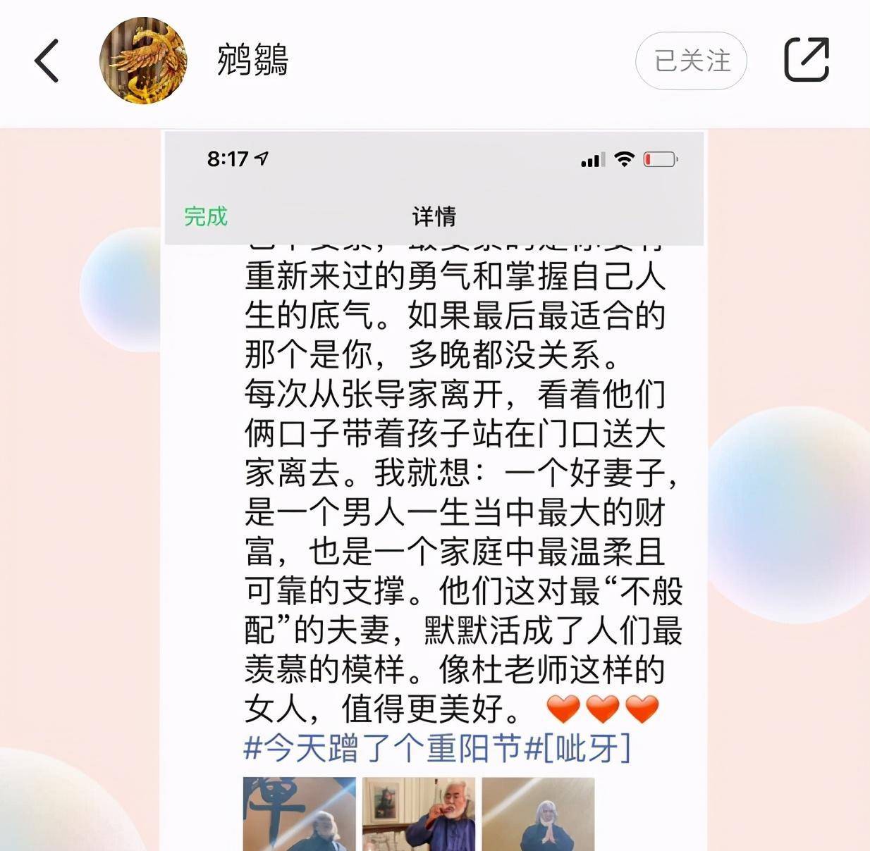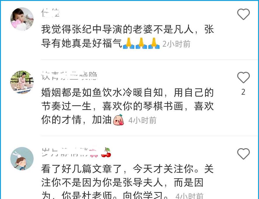 翻看杜星霖这条动态下的评论,无一例外地都是羡慕的声音,好比有网友称张纪中的老婆不是凡人,“张导有她真是好福气”;好比有网友说“关注你不是由于你是张纪中老婆,而是由于,你是杜教员,向你学习”。