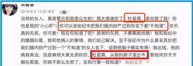 杜星霖就此上场。 但具有博士身份的杜星霖,彼时身为张纪中的女助理,回应称:“我不会跟乱咬人的疯女人对骂。”坚称自己和张纪中不是情人关系,只是张纪中的助理、经纪人。