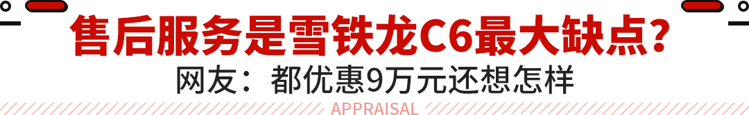 当然,这些缺陷既能够无限放大,也能够由于大降价而选择忽视,此次雪铁龙C6直降9万元,大部分网友就选择了忽视,可见在绝对的价钱面前,什么设计、售后都不是问题。同时在教授个人看来,省出来这9万元的确足以弥补一切的缺陷,落地13万多买一台轴距2米9配8AT的合资中型轿车,还要什么自行车? 假如非要挑缺陷,还是那句话:为什么只需湖北省才有这样的优惠?能不能全国各地都有,这样大家都能够花最少的钱享用越级般的体验。