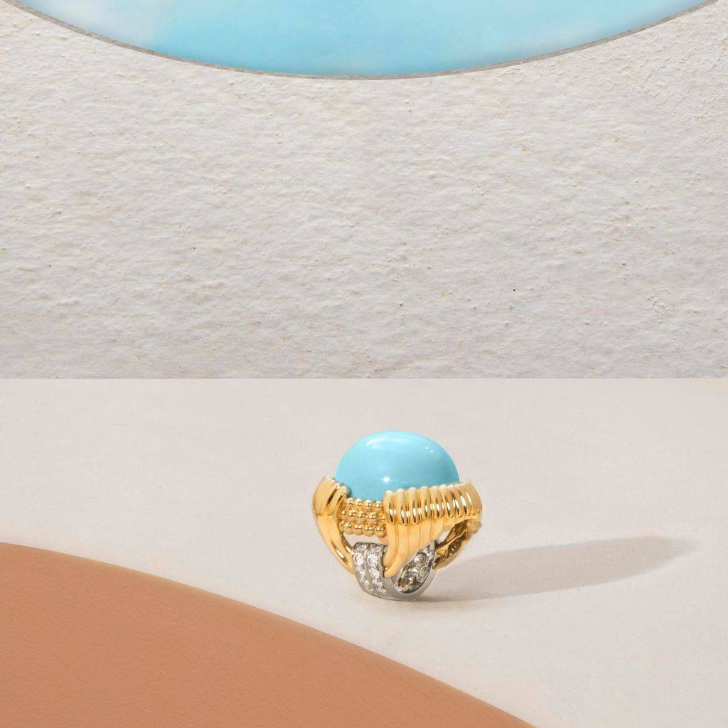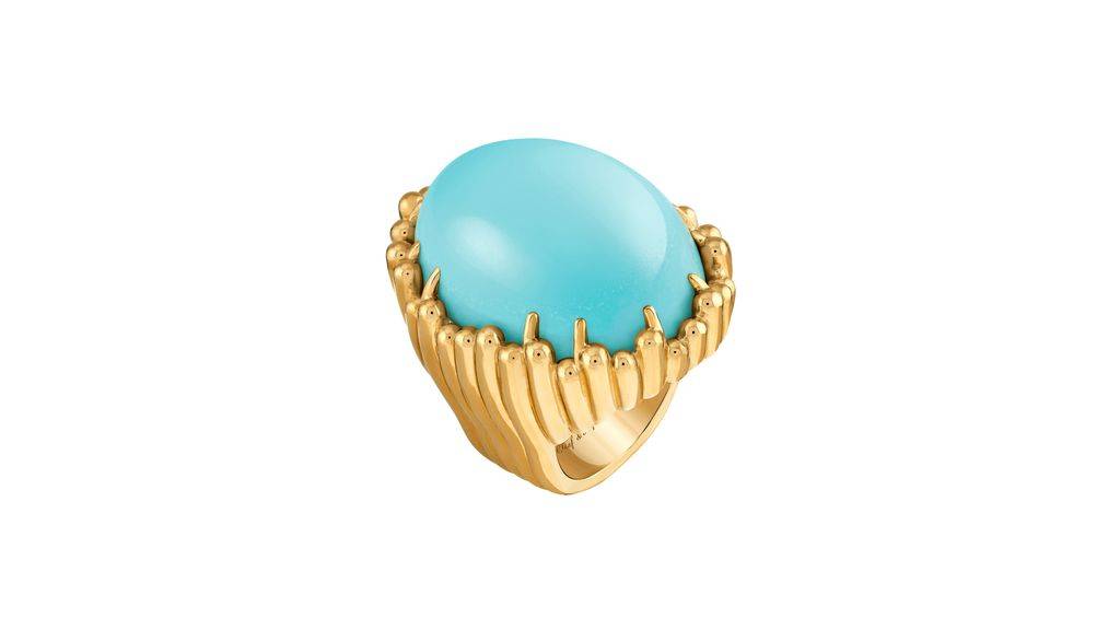 Onde de turquoise戒指圆满呼应了1960、70年代的鸡尾酒戒传统。品牌提供 |