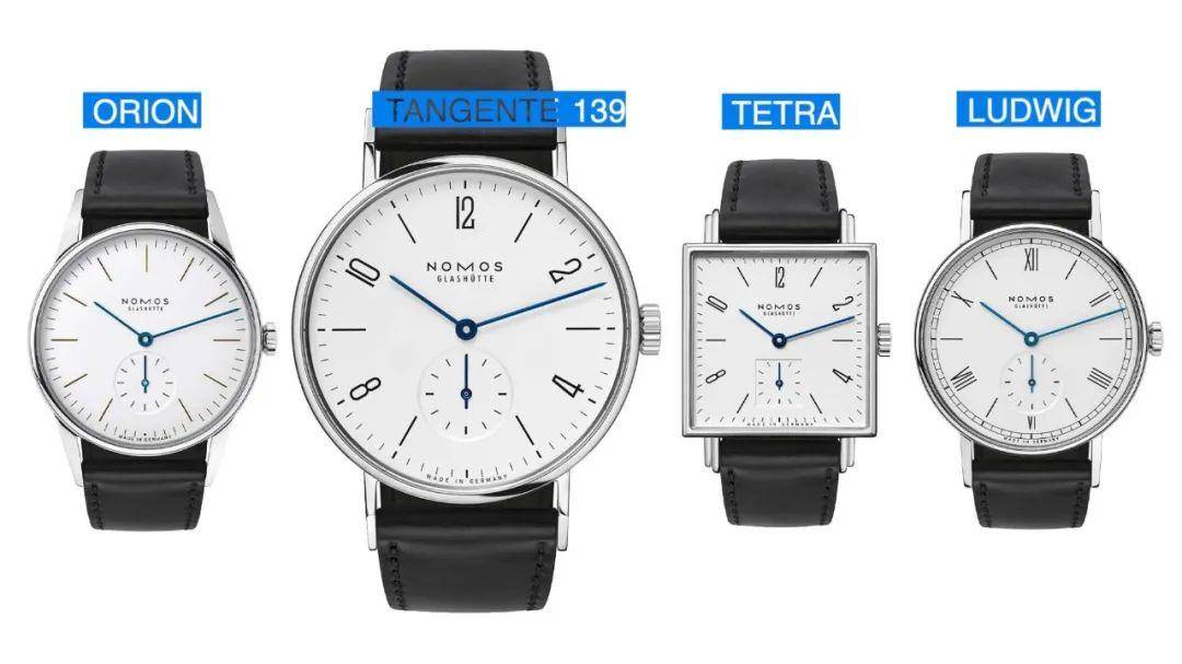 |特性 假如要为NOMOS的作风找出一个典型的话,那绝对就是Tangente系列。你把它和简约的瑞士表放能够察看到几个特性。 首先它的表壳上简直没有圆弧,边角的过渡都是十分硬朗的、猛烈的转机,不强调瑞士表所谓视觉上的天衣无缝,它凸出的就是盘面的功用和表示。