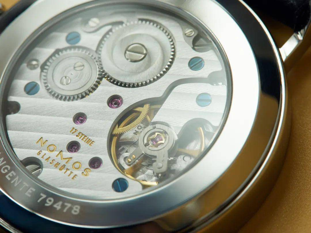 经常能够看到的一个现象是,重生团队首先推出的产品会是最为理想主义的作品,然后随着运营压力的上升,新的产品也开端向市场妥协。所以像这样跟着企业一同降生的腕表,绝对就是NOMOS最地道的滋味没错了。 |机芯 但这里的“地道”并不包含它的机芯,今天搭载的Alpha机芯曾经是几轮设计修正以后的成果。它提供了43小时的动储,振频每小时21,800次。
