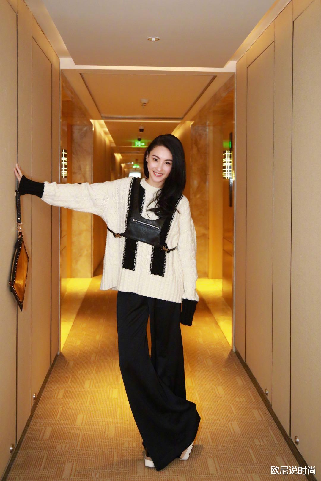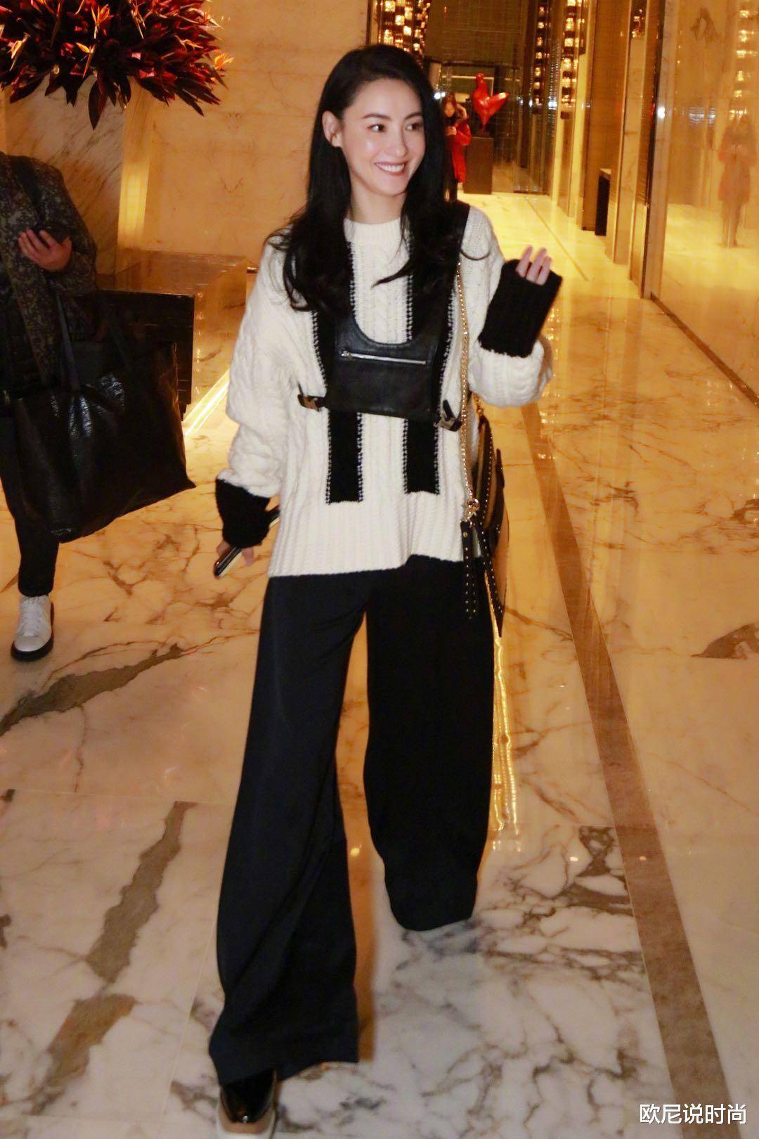 时兴的张柏芝用了一条黑色的阔腿裤修饰了自己的腿部线条,而且用了高腰的设计,把整个身体比例纵向拉长,这还没有终了,她还搭配了一个十分时兴的厚底松糕鞋,厚底的设计很合适娇小个子的女生在不经意间偷偷的长高,假如个子比较高的女生在驾驭这样厚底鞋的时分,难免在人群中有些突兀,当然还是要依据大家的个人状况来定。