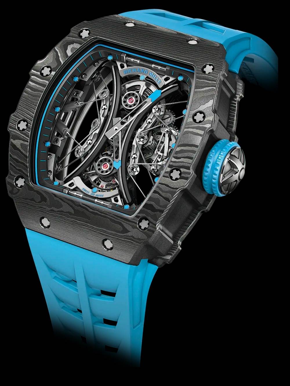 RICHARD MILLE理查德米勒RM53-01马球,限量30枚RM53-01是RICHARD MILLE理查德米勒与世界公认的最佳马球选手之一Pablo Mac Donough相遇「激情碰撞」得到的最新成果。这款腕表充溢运动感与生机,透过TPT碳纤维表壳不相上下的层压蓝宝石群居网表镜,能够看到悬浮式陀飞轮机芯,宛若专为马球这种高风险运动而设计的结构复杂的全新铠甲,表示出坚毅的模范。