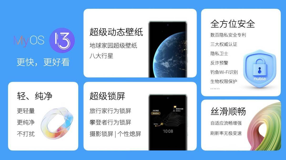 MyOS 13系统在“更快与更美观”上中止深度创新优化。为坚持系统调和个性之美,壁纸取色功用可依据壁纸颜色,自动生成多套配色战略,整体界面颜色自动随之而变。系统内设八大星球时空启辰超级动态壁纸,真切的星球自转和光影效果,带来设身处地般的宇宙银河畅游观感。旅游家行为锁屏,为可将每天的运动计步融合展示成点亮中国及环球地标的虚拟运动道路。更值得一提的是,旨在为用户提供轻量级的纯真系统,少广告、少预装,MyOS13最大水平减少手机无用信息的干扰,打造洁净流利的优质系统体验。