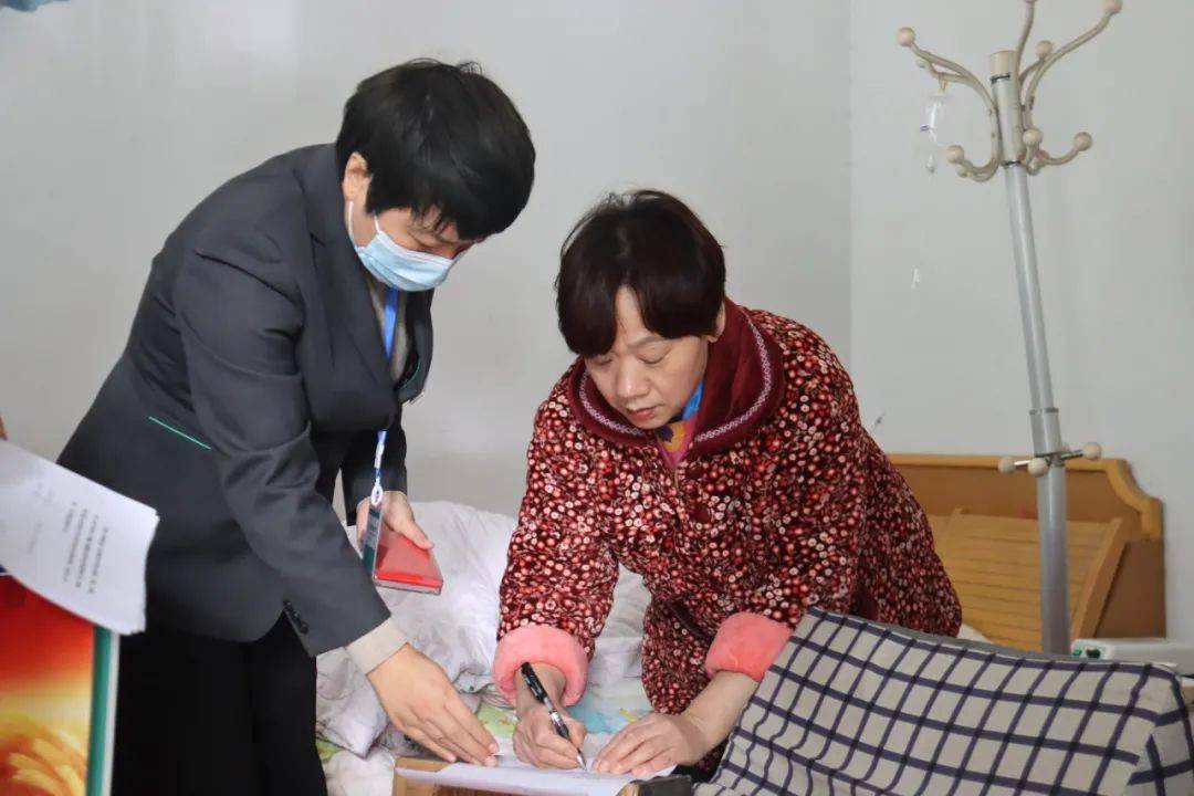 家住一里桥原消费公司家眷院的90岁高龄老太太王某患病卧床不起,工作人员中止上门效劳,代理人为其签署代理委托受权手续。