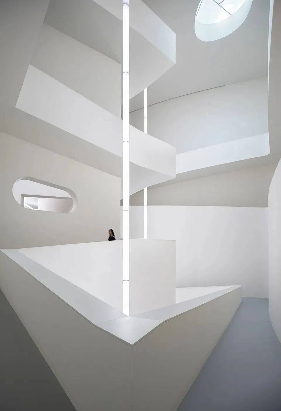 华茂艺术教育博物馆/阿尔瓦罗·西扎+卡洛斯·卡斯塔涅拉 纯色建筑的艰难与意义在于, 当一切的修饰与弥补都不复存在时,只需将空间做到极致才干使建筑具有直击心灵的力气。 不同于大多数建筑师熟习的在粗糙的模具上一层层做加法的过程,纯色建筑的构成则是 去除掉一切不用要的拼贴、掩饰,最终只剩下一种颜色。 在纯色建筑中,看似单一的空间言语成了独一的主导者,视觉无法聚焦于任何能够吸收留意力的装饰点,于是 人们将全身心投入到建筑自身,即空间体验当中。 02 白色派建筑:最简单,同时最崇高