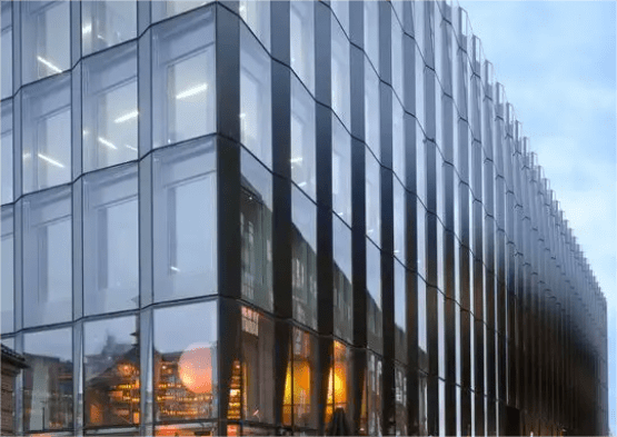 玻璃反射周围环境从而变得多彩 并非一切材质都能完成纯色, 最原始的材质常常能取得最出众的颜色效果。 纯色与现代工业的金属、玻璃等材质并不相符,纯色一定是粗糙的,是吸纳光照的,若是某种材质具备了反射光照的特性,那么它就无法避免地变得混浊。
