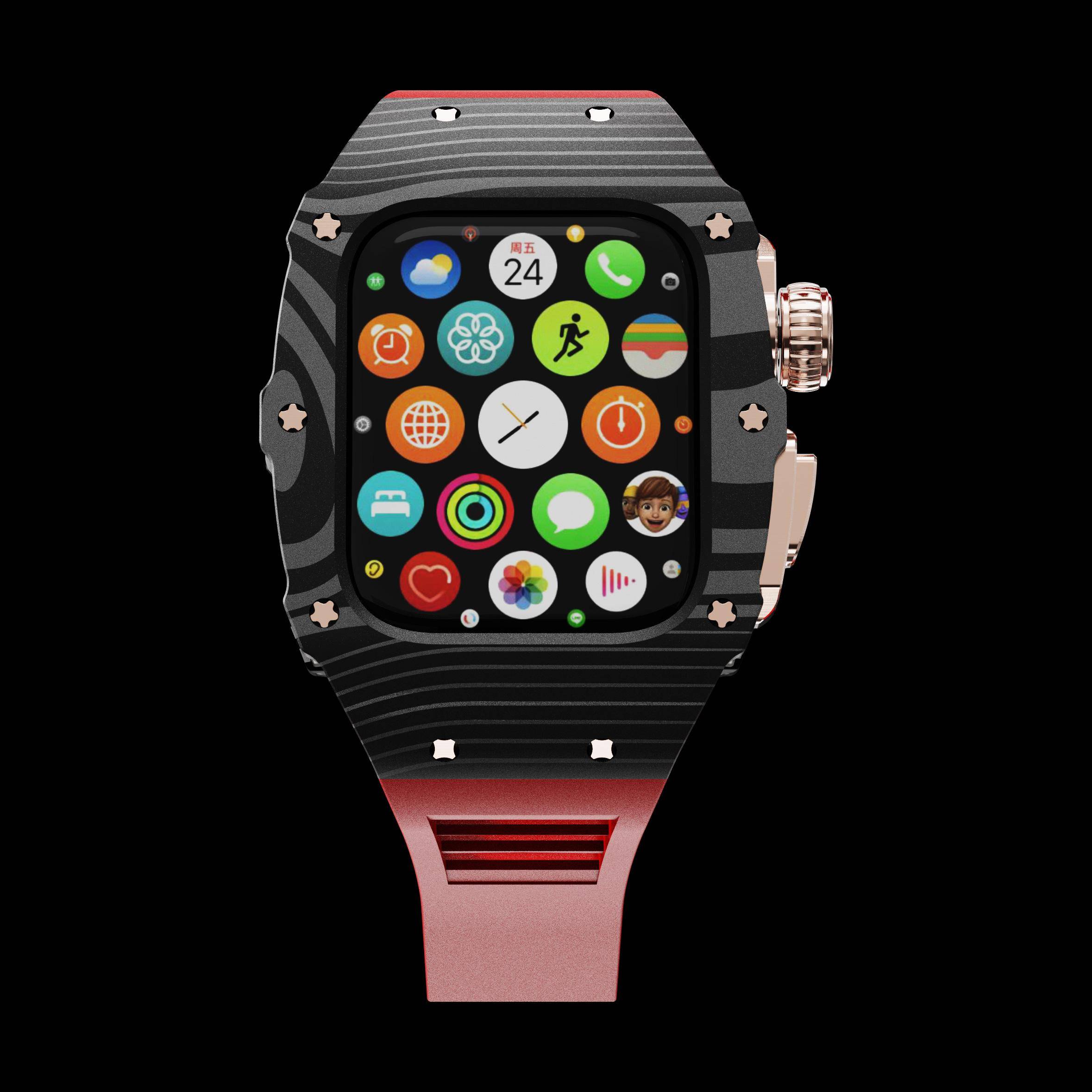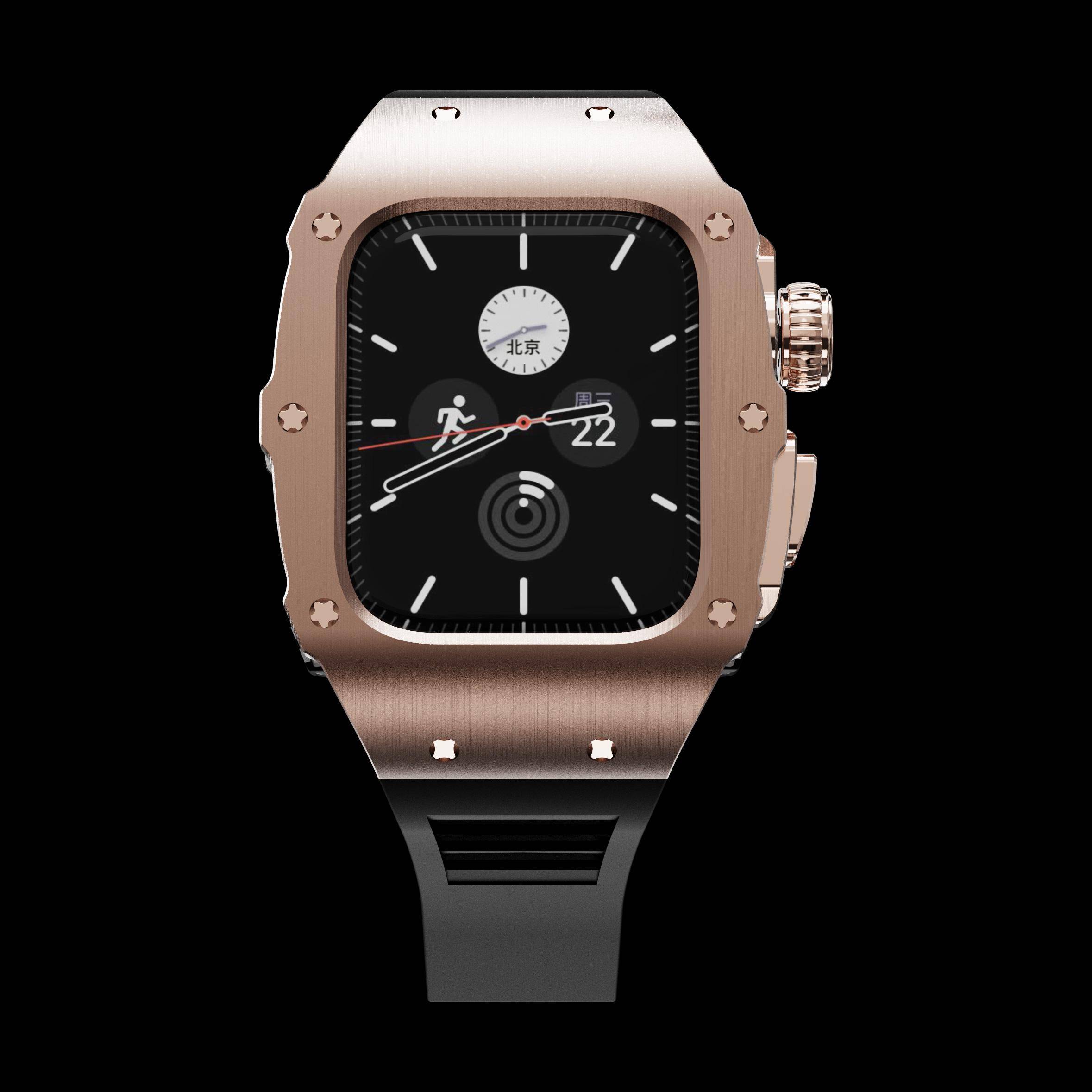 炫酷的外形 “智能的心,硬朗的身”,说的就是它。定制版Apple Watch Series 7经典的酒桶状外型、钢铁螺丝钉外型、参与赛车元素的按钮设计,整块手表,硬汉气质迎面扑来,直接跨界到理查德米勒!再加上玫瑰金和太空灰的表壳设计,以及四种颜色的表带设计,让整块手表的选择性更多,也彰显了大胆、夸大的设计理念,迎合了各种需求的消费人群。