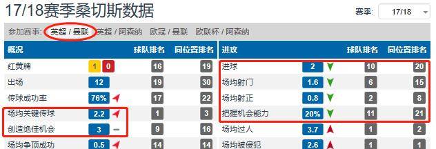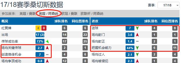 这里我们以17/18赛季的进攻数据做一个清点,上半赛季的阿森纳和下半赛季的曼联就能够看出智利神锋曾经开端迷失。