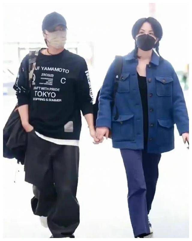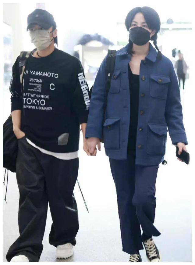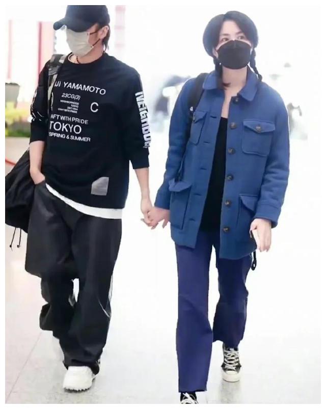 王菲和谢霆锋穿一样的颜色。王菲从上到下都是蓝色的,衣着开襟的蓝色外套,宽松的蓝色裤子,鞋子上是学生穿的帆布鞋。要不是他的气质,他还以为是厂花呢!