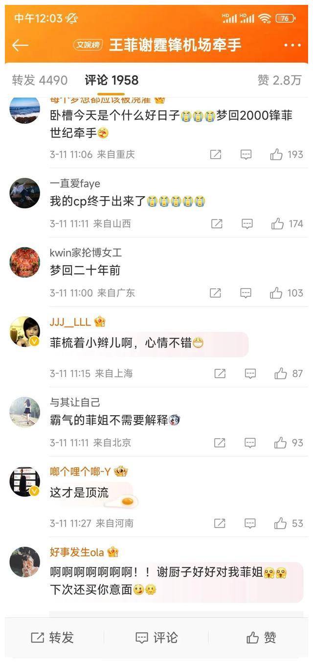3月11日,谢霆锋王菲机场牵手成为热搜话题。什么状况?