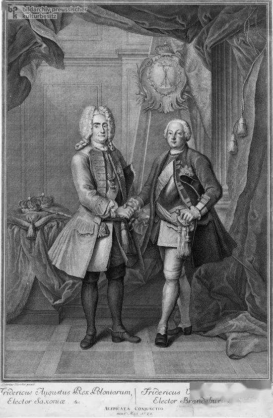 1728年,波兰国王强者奥古斯都和普鲁士国王腓特烈·威廉一世在一同。 某些批判家批判这本书太过于小说化;另一位饱学的历史学家称该书为“一本传奇”,叙说十分生动,而在细节方面不甚正确。但是事实上,伏尔泰的确以一位学者应有的谨慎来处置这本书。他不只查阅了许多政府文件,以至一如既往地咨询许多能够供给第一手资料的人:退位的国王斯坦尼拉斯自己、马雷夏尔·萨克斯、马尔伯勒公爵夫人、博林布鲁克、阿克塞尔·斯帕雷、丰塞卡与法布里斯爵士(曾做过查理的秘书)。他曾与查理最溺爱的部长冯·格尔茨爵士共住一段时期,冯·格尔茨于1719年被执行死刑这件事可能促使他研读这个“北方之狮”。1740年,曾经做过查理私人牧师的约翰·诺伯,在他所出版的回想录中,曾指出伏尔泰叙说史实的若干不正确之处,伏尔泰在随后的版本中,立刻加以修正。当然还有些其他误失处,特别是关于战役的细致叙说上。后来的批判家辩称伏尔泰太过赞誉查理,把他视为“或许是自有人类以来最不平凡的人,他在他身上融合了一切祖先最巨大的德行,除了具有过火的优点外,他简直全无缺失或不高兴”。这或答应以为是一种夸饰。伏尔泰解释道,查理“过火具有一切的英雄美德,致使成为缺陷”。伏尔泰将这些列为糜费、轻率、残忍、专制及欠缺饶恕的雅量,他还指出国王身上这些缺陷如何伤害了瑞典。他还下结论,以为查理是“一个超凡巨大的人”。无论怎样,这本书不只是学术,也是艺术作品——就结构、方式、颜色与作风而论。很快,一切欧洲的学问分子都在读《查理十二史》,伏尔泰的名声也因而抵达了他史无前例的普遍与稳定。 1731年8月5日,他从鲁昂回来后,伏尔泰成为丰泰纳-马特尔伯爵夫人位于巴黎皇宫左近官邸的贵客。夫人发现他是如此高兴的同伴,继续供他住宿,直到1733年5月。他以无比的生机掌管着夫人家中充溢文学气息的晚餐,同时在她的私人剧院里导演主要是自己的剧作。在停留期间,他为拉摩的桑松撰写歌剧本(1732年)。可能是在丰泰纳-马特尔伯爵夫人在法兰西剧院的包厢中,他看到了他的《艾里菲勒》一剧(1732年)的失败及他的传奇性悲剧《扎伊尔》 ( Zare ,1732年8月13日) 猖獗似的胜利。他写给一位朋友说: