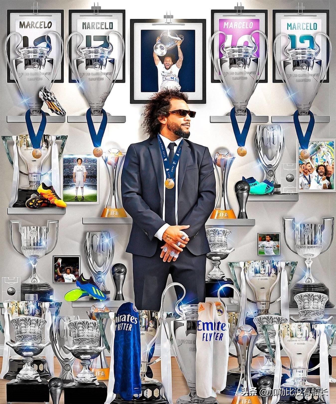他在皇马效能超越15年,参与了545场竞赛,打进38球,助攻103次,随队取得了5次欧冠冠军、6次西甲冠军、3次欧洲超级杯冠军、4次世俱杯冠军。杯赛冠军、2次西班牙国王杯冠军和5次25次冠军头衔,包含西班牙超级杯,巴西人也成为皇马历史上取得冠军奖杯最多的球员; 上赛季欧冠决赛终了后,马塞洛告别了效能15年的俱乐部仰仗25个冠军头衔,巴西人也成为了皇马历史上夺得冠军奖杯最多的球员。