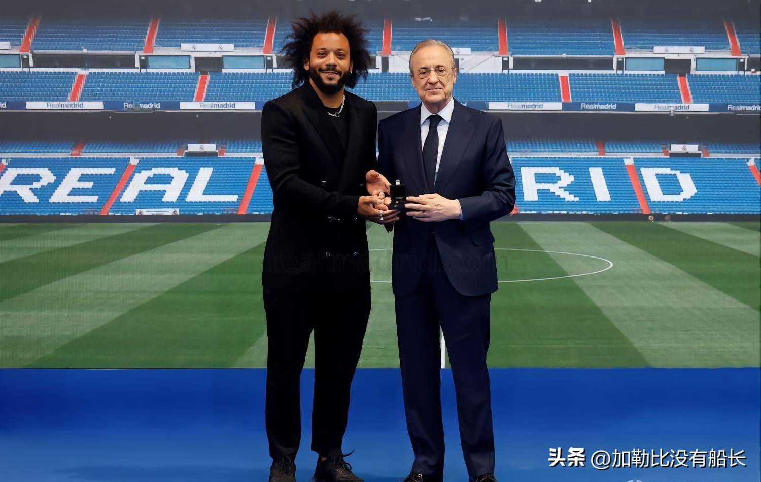 在俱乐部为马塞洛举行的告别仪式上,这位球队英雄和他的家人拥抱了一切人,包含老佛爷、安切洛蒂、俱乐部传奇劳尔和许多其他名人。最后,马塞洛与自己在皇马生活夺得的25座冠军奖杯合影留念。