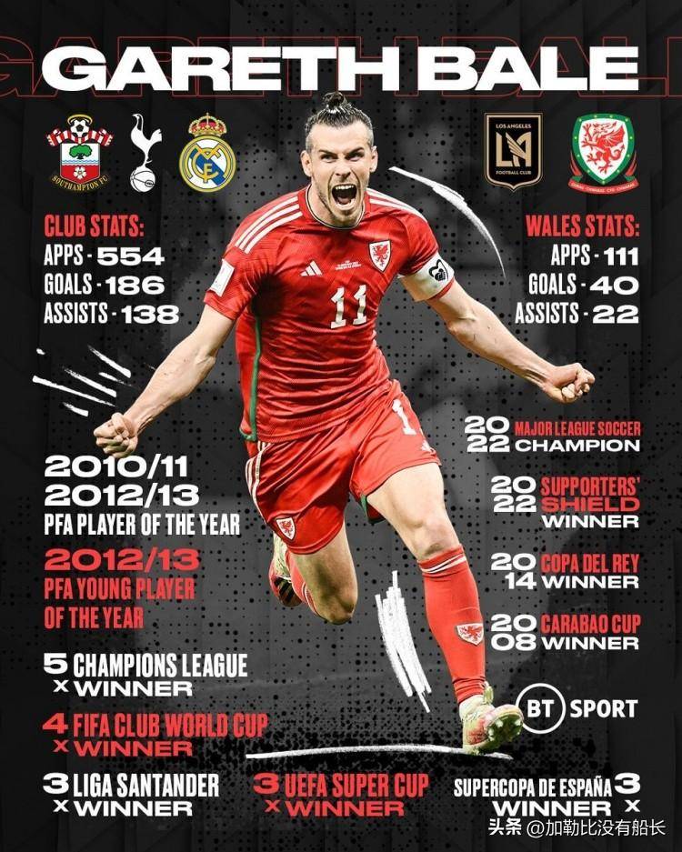 当33岁的贝尔以队长身份参与2022年世界杯时,这位年轻的左后卫在分开皇家马德里之前在圣徒南安普顿初次亮相,他曾经取得了五座欧冠奖杯。这位威尔士巨星,在三秒后多次传球给自己,曾经是球队历史上无须置疑的传奇; 去年告别欧洲的贝尔,进入2023年不久就宣布退役 去年夏天,贝尔以256场竞赛106球67助攻、5次欧冠冠军和3次西甲冠军的成果,在终了了与皇马的合同,告别欧洲赛场后,决议在MLS继续自己的职业生活。