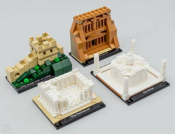 今天我们就来看看乐高40585 建筑奇迹的世界套装开箱评测,这款套装是2023年第一季度的vip积分兑换套装,套装内包含382个零件。 套装能够拼搭出四个微型的古代建筑,分别代表了中国长城、印度泰姬陵、希腊帕特农神庙和约旦佩特拉的卡兹尼神殿。