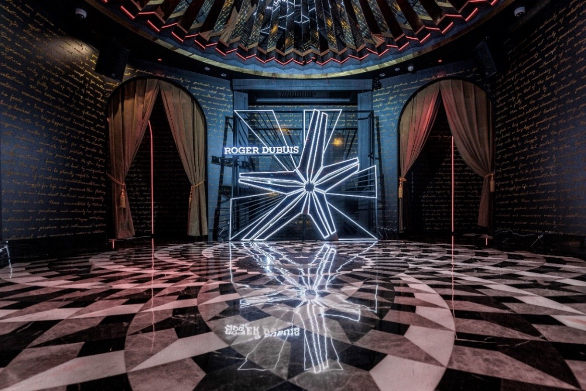 王者系列星际镂空艺术家协作腕表-空山基 派对现场更设有醒目的空山基机械姬艺术装置及罗杰杜彼标记性的五芒星外型装置,金属肌肤与肌肉线条呈现颇具未来感的共同美学,引领宾客探求充溢生命力的机械时空。