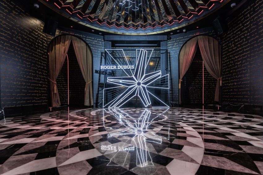 派对现场更设有醒目的空山基机械姬艺术装置及罗杰杜彼标记性的五芒星外型装置,金属肌肤与肌肉线条呈现颇具未来感的共同美学,引领宾客探求充溢生命力的机械时空。