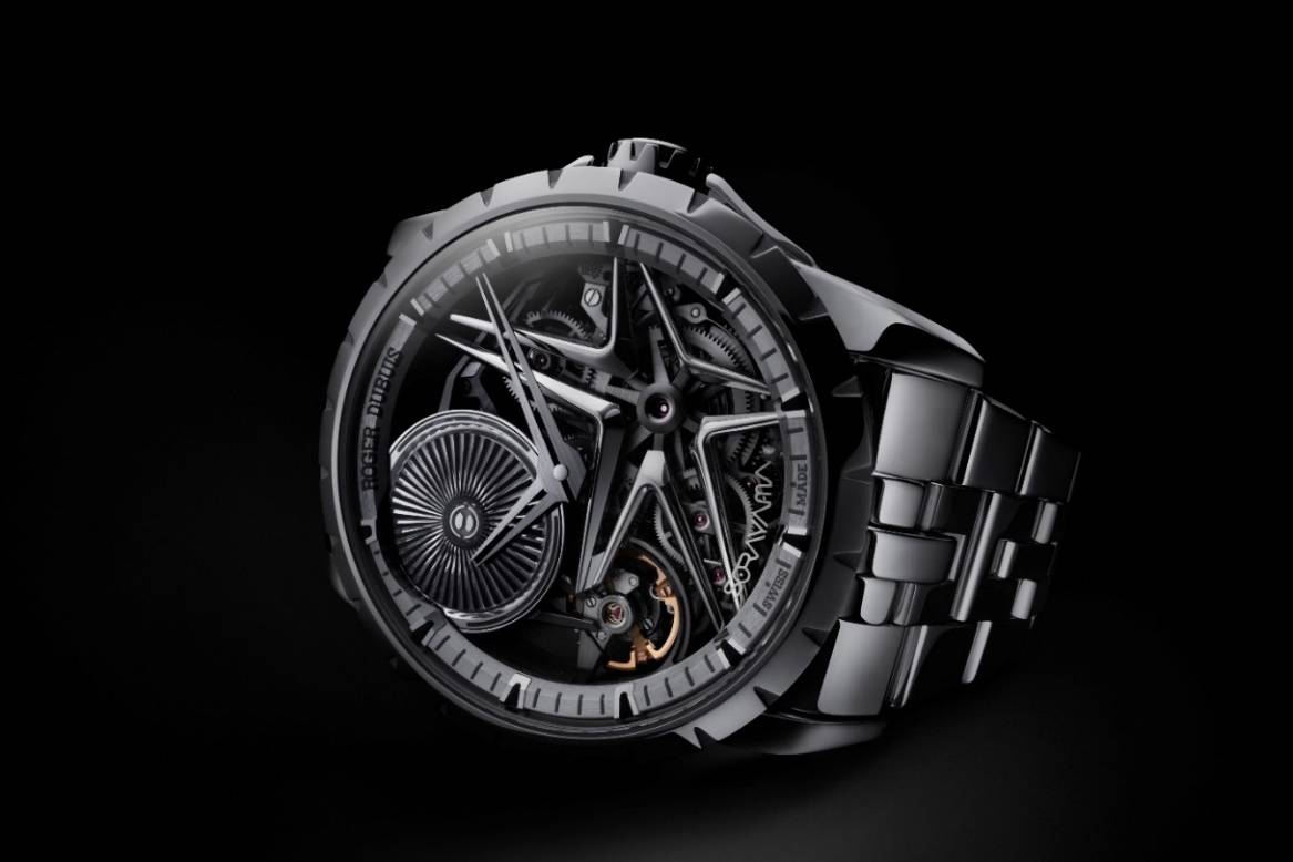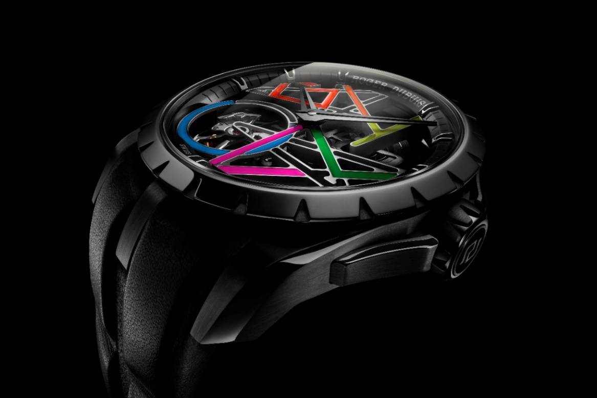涂鸦创意碰撞:罗杰杜彼x Gully 罗杰杜彼从不畏惧应战,与擅长融汇各类涂鸦主义作风的法国涂鸦艺术家Gully协作,推出王者系列单飞行陀飞轮艺术家协作腕表-Gully,再度创作品牌经典单飞行陀飞轮腕表。Gully将高级制表的专业学问与颜色缤纷的涂鸦艺术融合,采用一笔画技巧焕新演绎标记性五芒星元素。表壳与机芯采用简约凌厉的线条,再加上现代高科技材质的运用,不只极大提升时计的水准,更使其成为一块令人兴奋的画布,轻松完成艺术家的奇思妙想,打造无独有偶的特殊杰作。