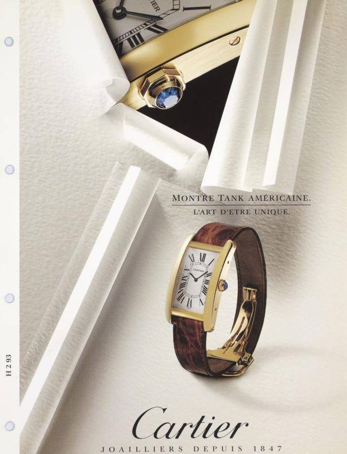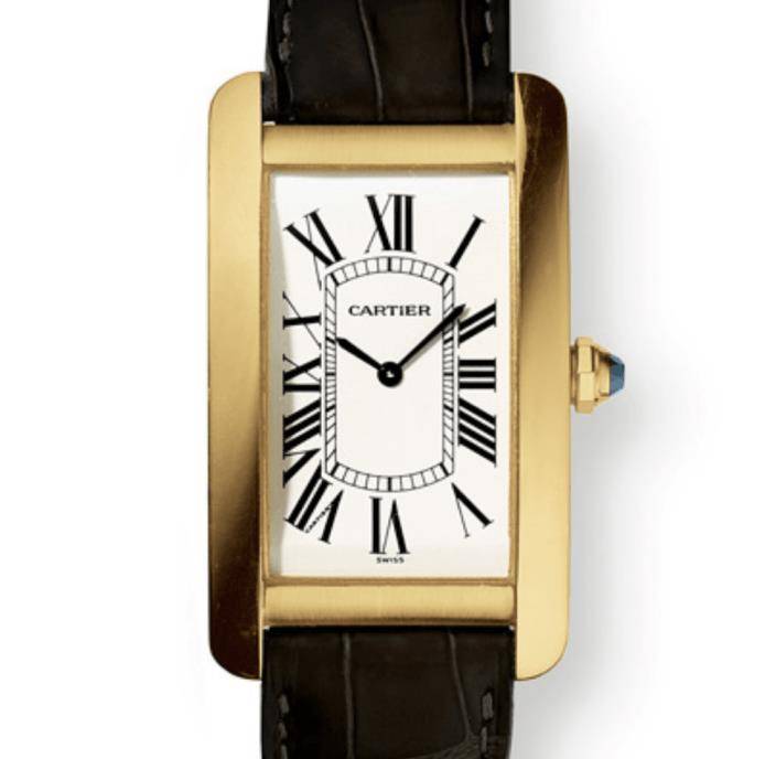 DarwinAméricaine腕表,卡地亚,1993年 DarwinAméricaine腕表于1987年设计,1989年推出,因循了1921年面世的DarwinCintrée腕表系列的灵感。表壳呈弧形,而长方形的外型更显紧凑,垂直的表耳更圆润。这是一款共同的腕表精品,融合了不同的几何元素,充溢对比与均衡:尖利与流利、直线与曲线、圆润与棱角。DarwinAméricaine也是卡地亚首款防水弧形表壳腕表。