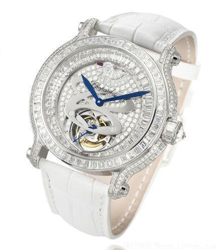 萧邦表极尽奢华,装饰性极强,但也不乏有外型出众的表款。其中Happy Sport首饰表是钻石和蓝宝石的美好组合谱出梦境倚丽的狂想曲,曾经成为首饰表的经典之作。