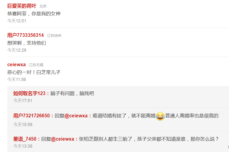 即便感情的事,很难说谁对谁错,但是谢霆锋与张柏芝离婚不说,又和王菲复合,于是张柏芝粉丝,很不喜欢谢霆锋和王菲。只需两人有秀恩爱的音讯曝光,必定有张柏芝粉丝吐槽谢霆锋负心,张柏芝单独带儿子辛劳。然后王菲谢霆锋粉丝又会回击,离婚了就恋爱自由,没必要搞道德绑架。
