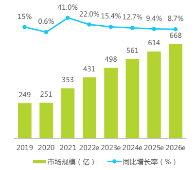 家长目前及未来在教育智能硬件方面的预算占比 其中,学生平板是最受家长欢送的教育智能硬件产品。置办过教育智能硬件产品的家长中,约七成选择置办学生平板,远高于置办其他产品的家长占比。第二受家长欢送的是点读笔、儿童智能手表、扫描笔及智能作业灯,约三成左右的家长置办过。 从消费端来看也是如此——艾瑞咨询预算, 2021年教育智能硬件市场范围为353亿元,2026年有望接近668亿元。