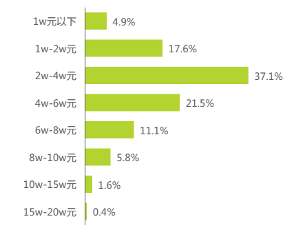 从家长支付意愿看,孩子教育方面的支出分配逐步向硬件产品倾斜。艾瑞咨询数据显现,当代中国度长花在孩子教育上的钱在1万-10万元之间,绝大部分家长每年为孩子破费2到4万元,细致占比为37.1%。