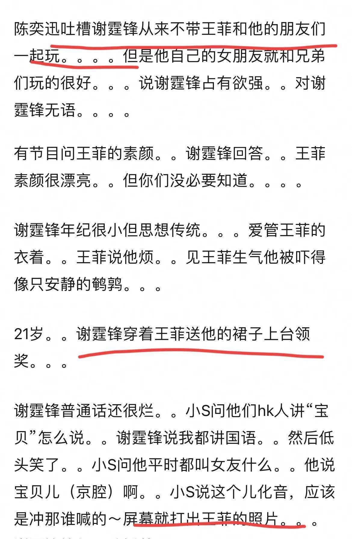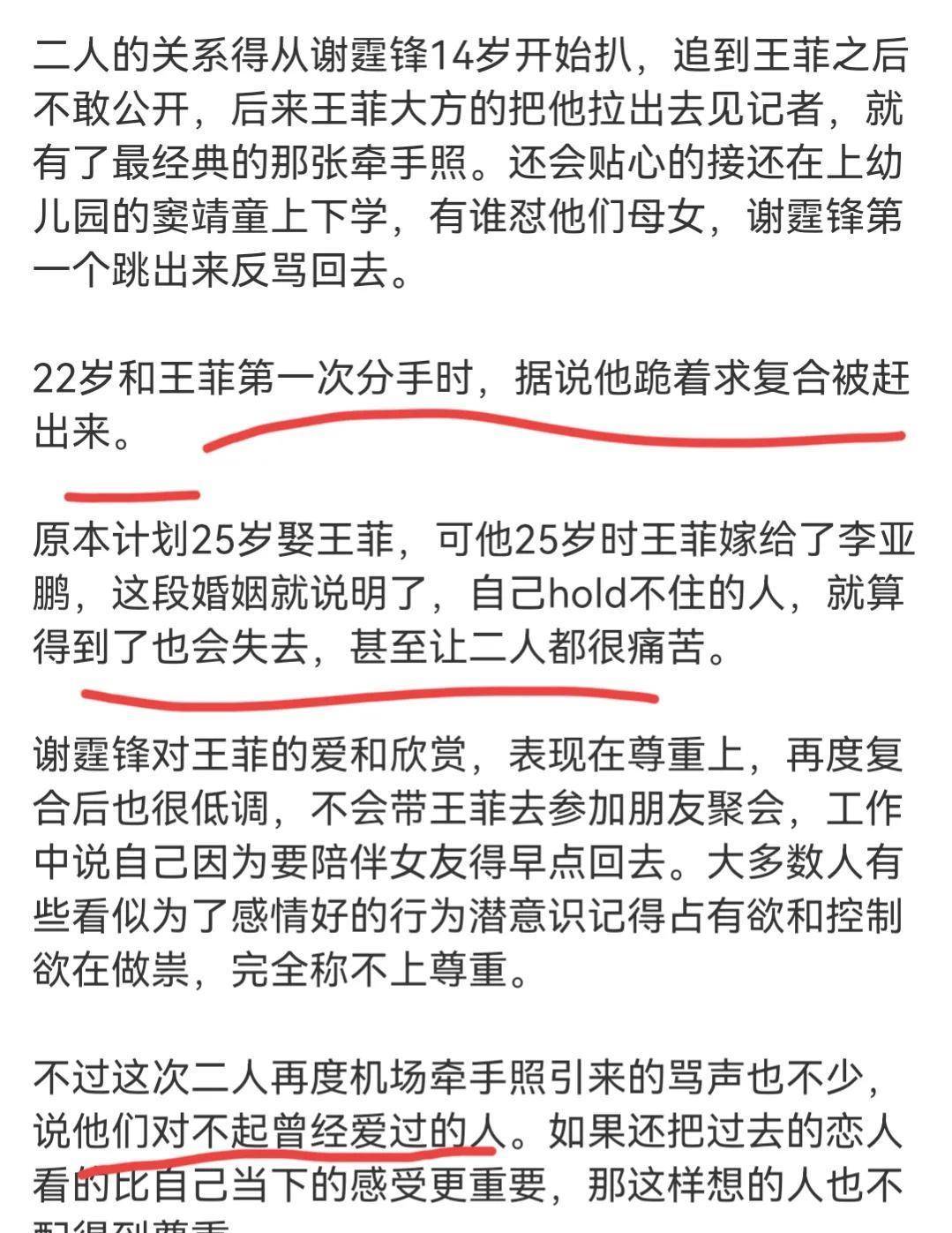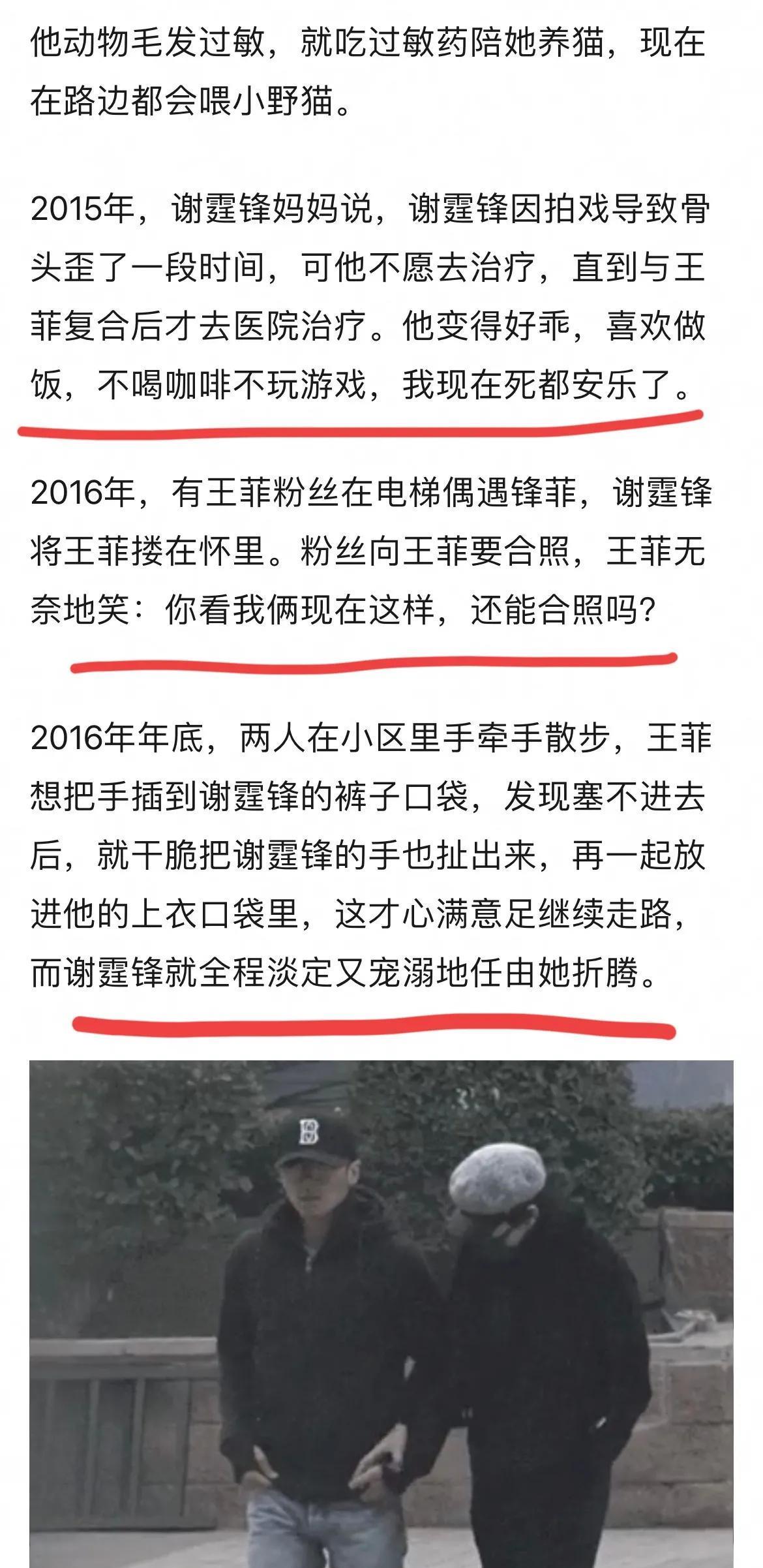 面对歌迷的祝贺声,王菲挥手打招呼,表示感激。谢霆锋掉以轻心肠站在她身后,伸手维护女友不受王菲的伤害。固然他伸出手的距离只需王菲的背包那么远,但足见他对女友王菲的关怀。度。 谢霆锋的好友陈奕迅曾吐槽过谢霆锋,他是一个霸道总裁,王菲的素颜只能给谢霆锋一个人看,即便两家私自见面,王菲也只能唱谢霆锋的歌,而他也只能唱给他听。