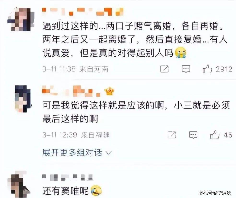 但回看评论区我们不难发现,祝福的声音还是很少的,大部分人对两人产生质疑,嘲讽:两口子赌气离婚,然后又在一同了,有人说这是真爱,对得起他人吗?