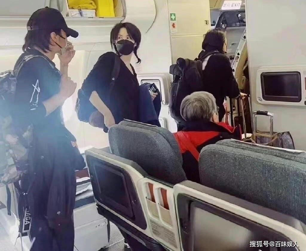 在飞机上,谢霆锋将背包放中止李箱中,王菲则是紧紧地跟在后面,一副沉浸在恋情中的小女人的容貌。