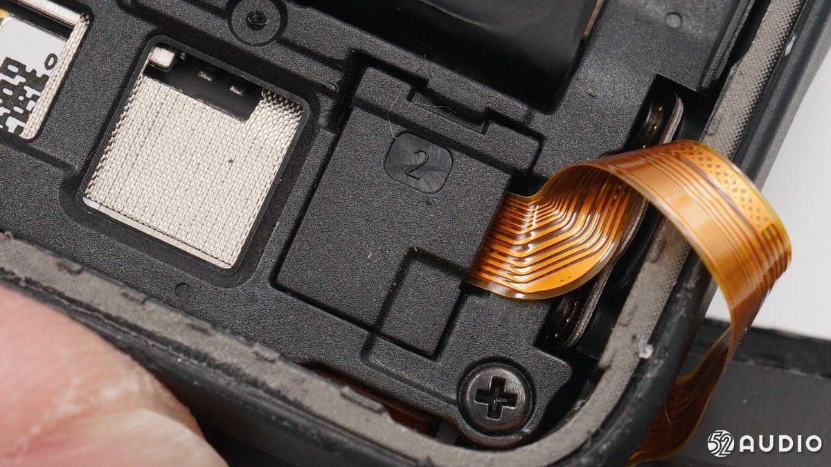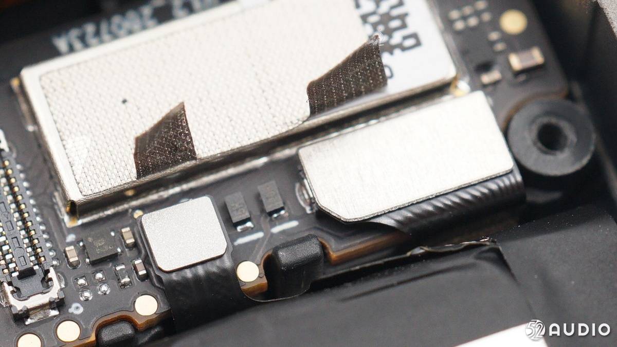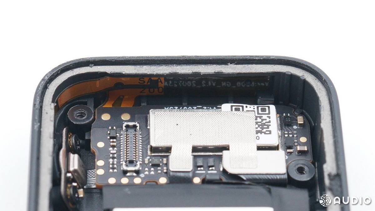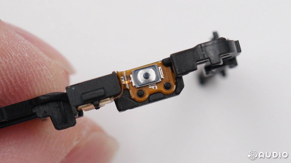 腔体右侧内部结构一览,有功用按键和麦克风单元,以及蓝牙天线。