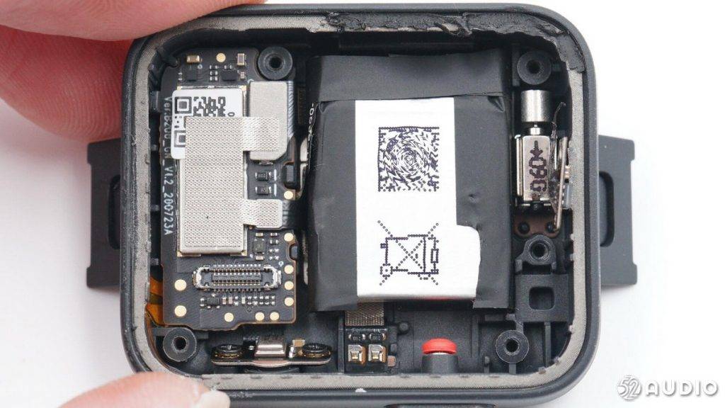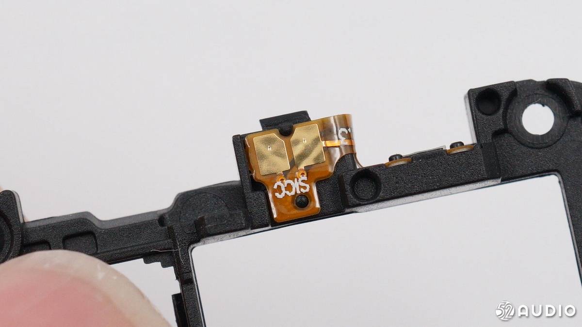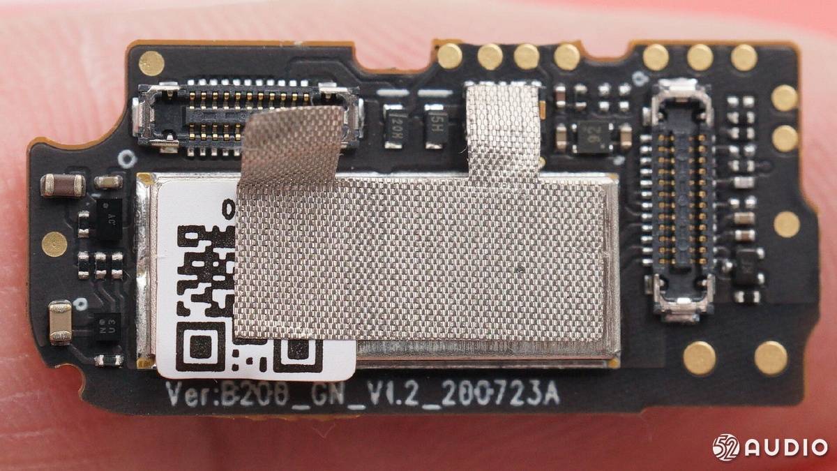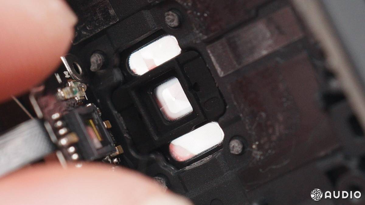 腔体右侧内部结构一览,有功用按键和麦克风单元,以及蓝牙天线。