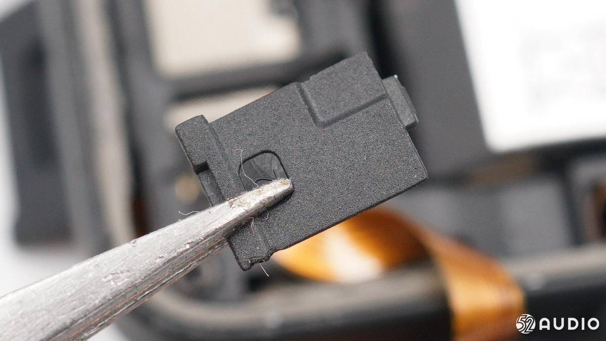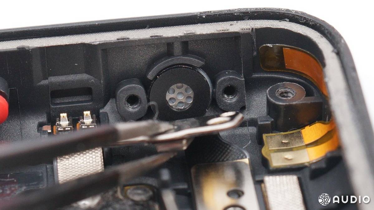 取掉麦克风单元,腔体上麦克风开孔内侧有圆孔防尘罩和防水膜掩盖,避免异物进入腔体。