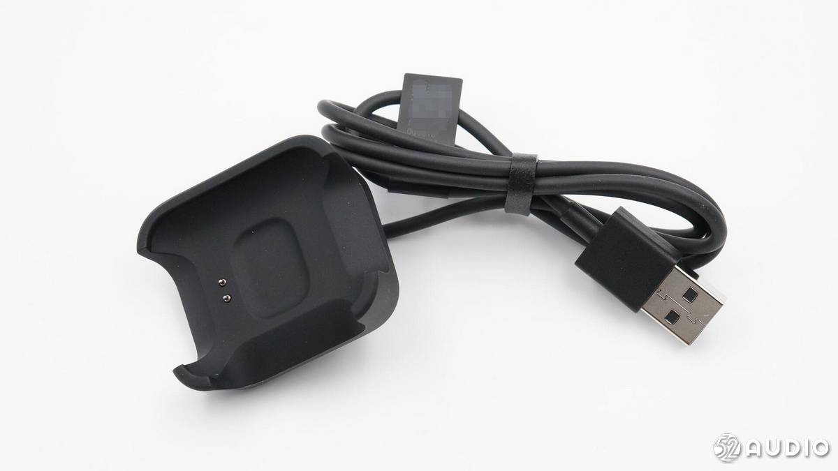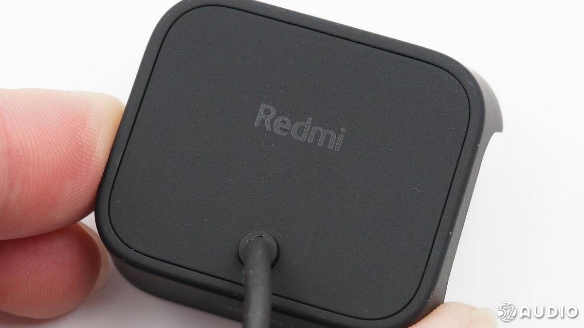 充电底座背面印有 Redmi 品牌LOGO,线缆直接衔接到充电底座上。