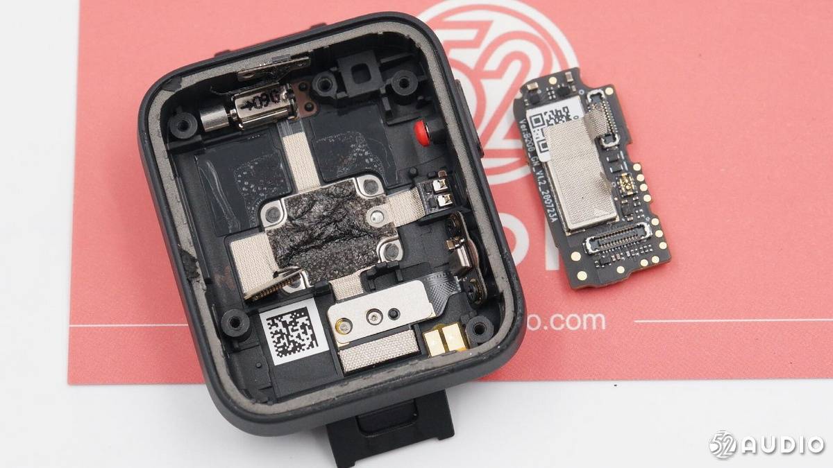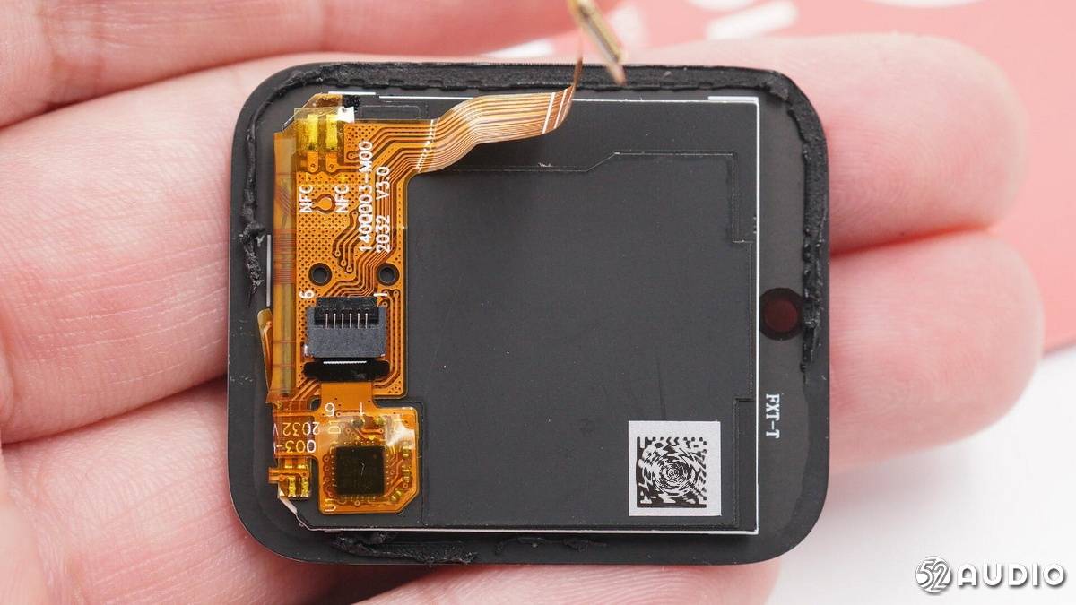 表盘正面光学传感器开孔特写,用于自动调理亮度功用。 二、Redmi Watch 拆解
