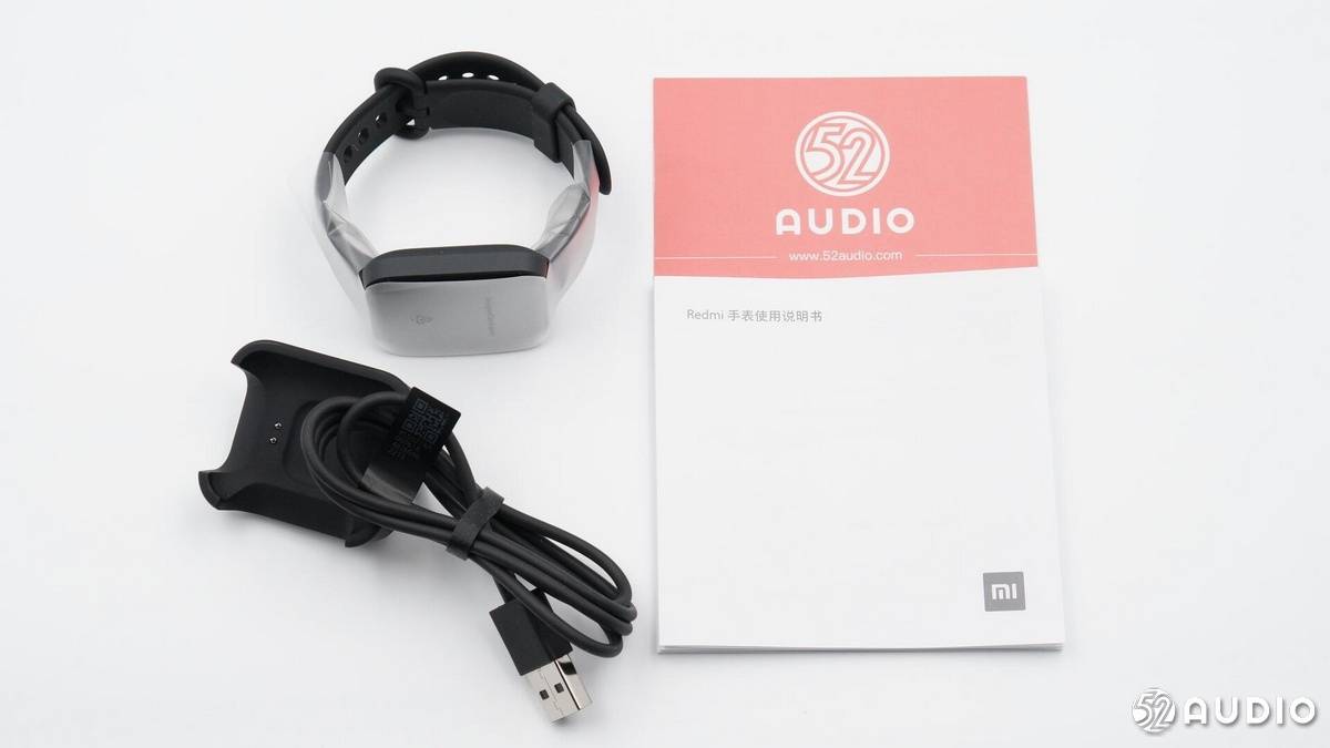包装盒内物品有Redmi 手表、充电底座和产品阐明书。