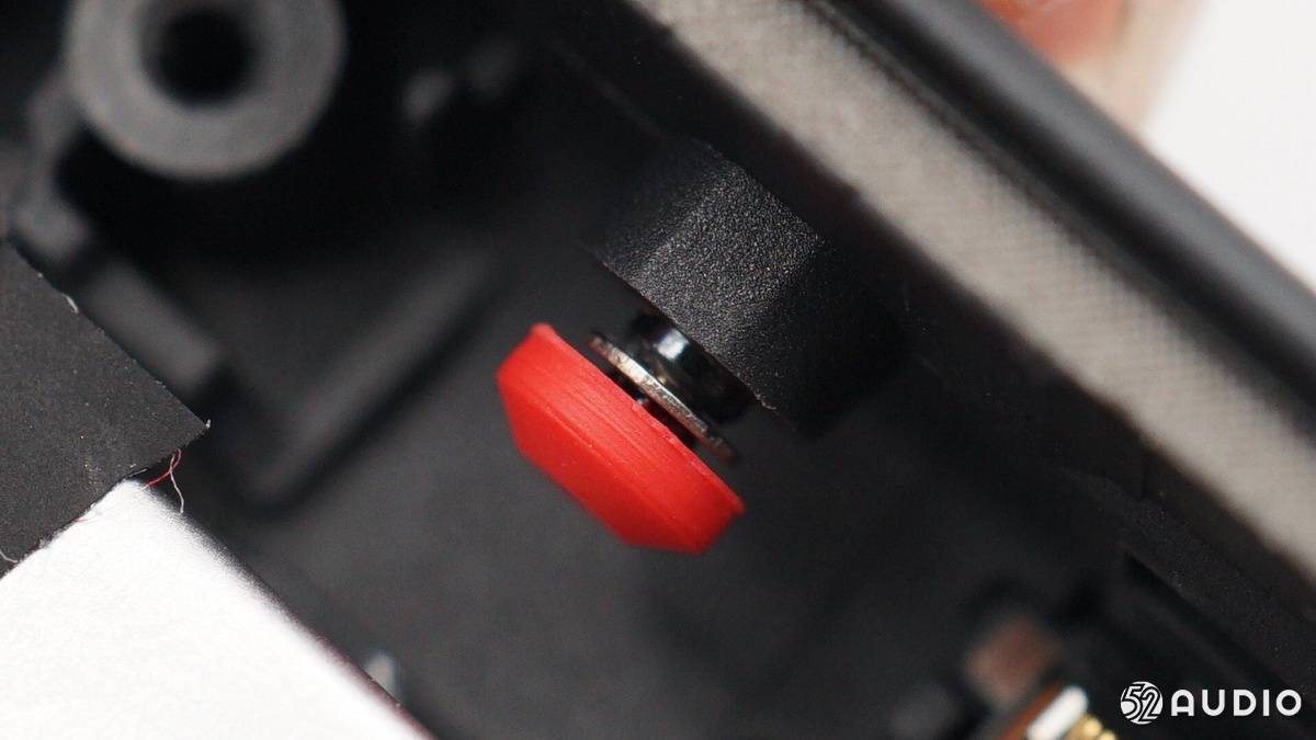 功用按键内部结构一览,设计有红色缓冲橡胶帽。