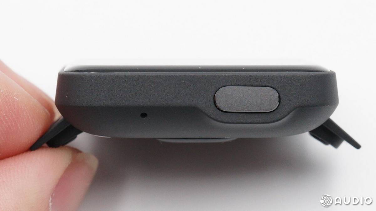 麦克风开孔特写,用于语音通话、智能语音助手等功用。