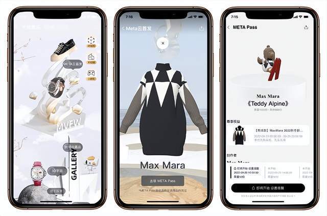 据天猫奢品引见,9月开端巴黎、米兰、伦敦、纽约四大时装周陆续中止,朴素品牌们在天猫的“元宇宙”时装周Tmall Luxurymeta Week也同步启动。经过“云首发”(META Pass 新品发布)、“云秀场”(AR 互动秀场)、“云体验”(XR 线下体验)的创新互动方式,将时下炙手可热的 Meta 数字技术进一步应用在朴素品消费场景。 在虚拟世界如何“首发新品”?天猫奢品在业界率先推出META Pass 数字权证,Burberry、Max Mara、Marni、Bogner 等多个品牌首发参与。 META Pass 是一种由区块链技术驱动的创新互动形态,被视为天猫奢品元宇宙项目的通用门票,由蚂蚁链提供技术支持。经过领取 META Pass,消费者不只能够取得一枚在区块链上认证的、含有个人淘宝昵称的无独有偶数字艺术品,还能够兑换线上线下权益,如新品优先置办,在未来,还可取得如品牌线下活动入场门票、奢品效劳体验等。