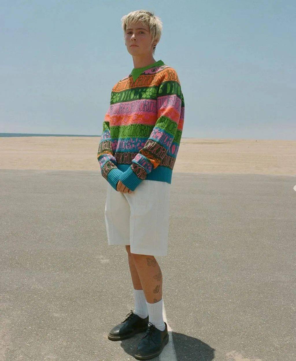 极具Stussy特征的“wave print”涂鸦字体呈现出的Dior logo兴味而有冲击力,也是本次联名的一大亮点所在,丰厚高饱和的糖果颜色充溢户外的生机与自由,这也是Shawn Stussy十分擅长的。