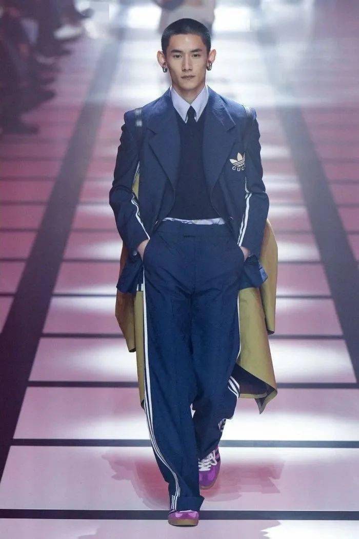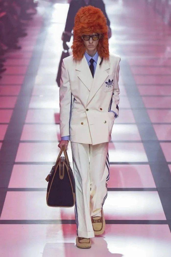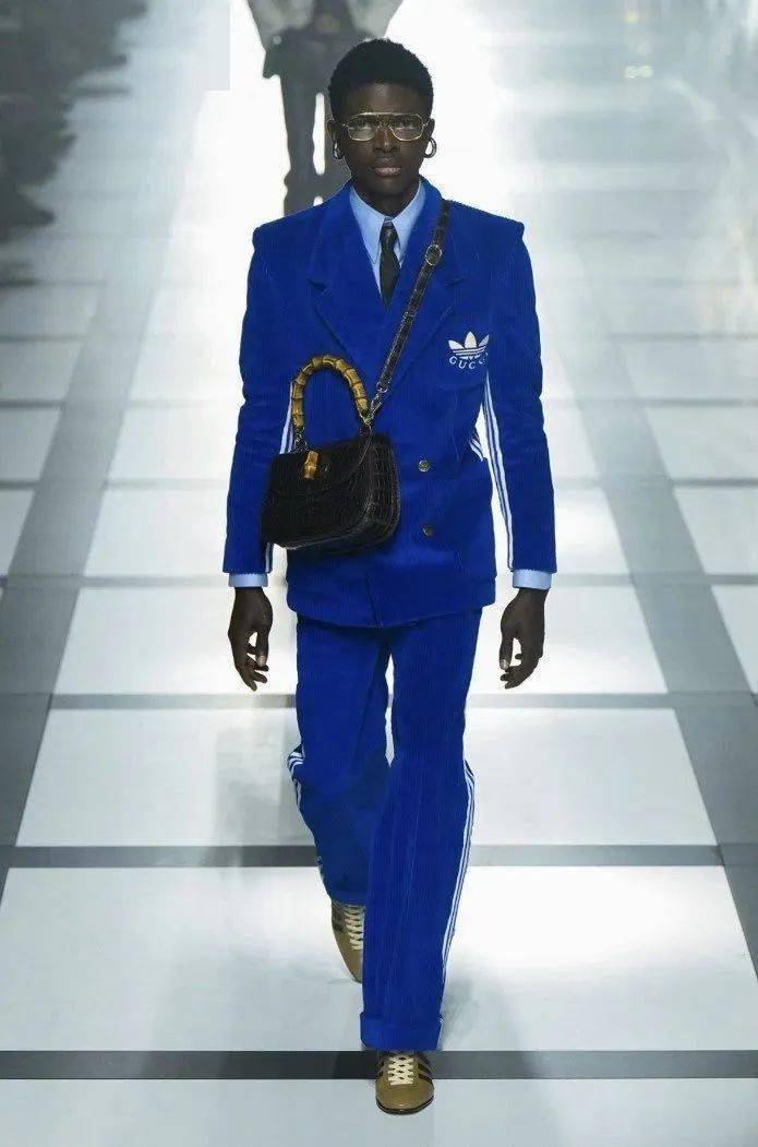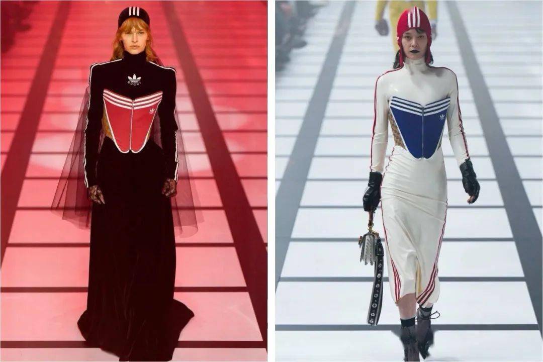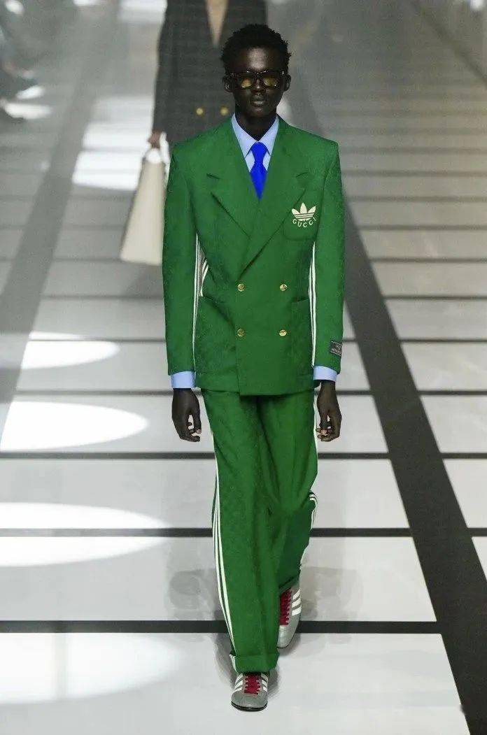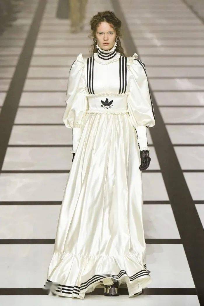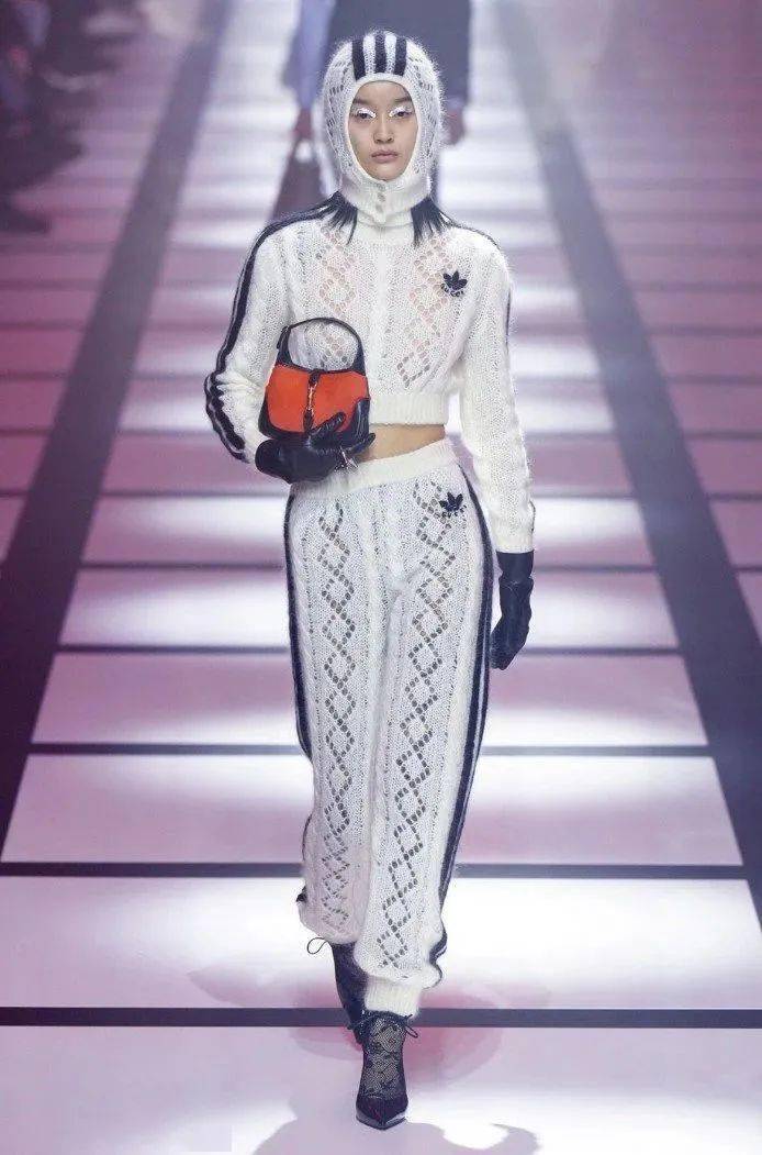 (图片来源:Balenciaga官网) 至于风云能否真的停息,我们不得而知。 “ Gucci x adidas Originals Gucci x adidas Originals的联名从预告开端就讨论度极高,自身就具有极强作风的两个品牌,这番联名着实让人眼前一亮,复古与运动的分离既不失各自的亮点,又翻开了新潮摩登的更多可能性。 Gucci在米兰时装周2022的秋季系列大秀上带来了84套作品,无论是单品数量还是样式种类,这次联名都称得上是史无前例的丰厚和精彩。创意总监Alessandro Michele应用多样颜色的混合面料,把adidas Originals与Gucci融合出全新的logo,针织套装、宫廷长裙、运动感西装……完整突破你的想象。