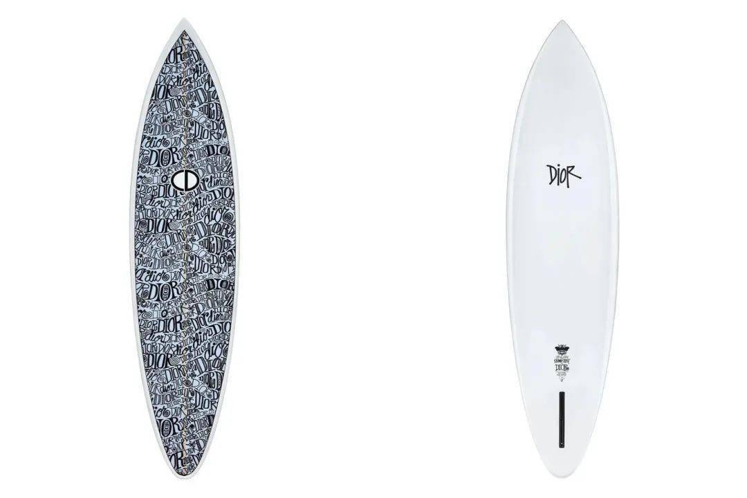 (图片来源:得物) 冲浪板也是此次联名的一个超级惊喜,整体白色注入灰与冰蓝的颜色,联名手写字体的涂鸦图案贯串板身,据了解每块冲浪板均须耗时72小时手工制造,且全球限量仅有100块。