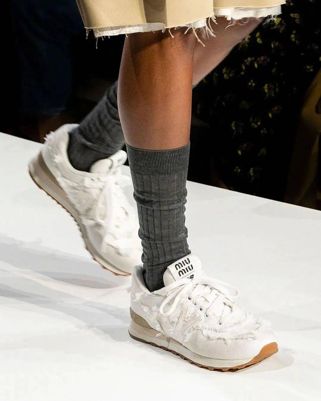 Gucci和adidas Originals都在保存自己鲜明特征的同时,又突破了各自的固有印象,这次联名完整能够称得上是设计和口碑双双在线的一次联名。 “ Miu Miu x New Balance 作为少女心代表的Miu Miu,和New Balance的联名绝对是少女抢钱联名系列。固然仅仅是作为一款联名鞋款悄然出往常Miu Miu 2022春夏大秀的现场,却很快就被捕获到它的特别之处。