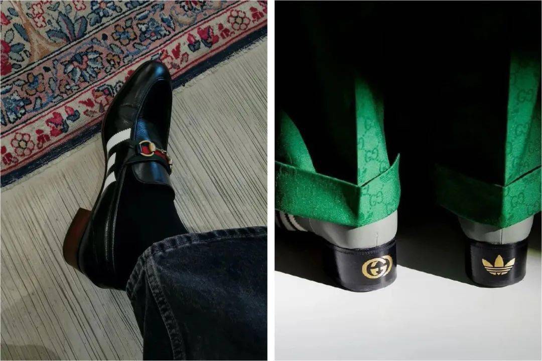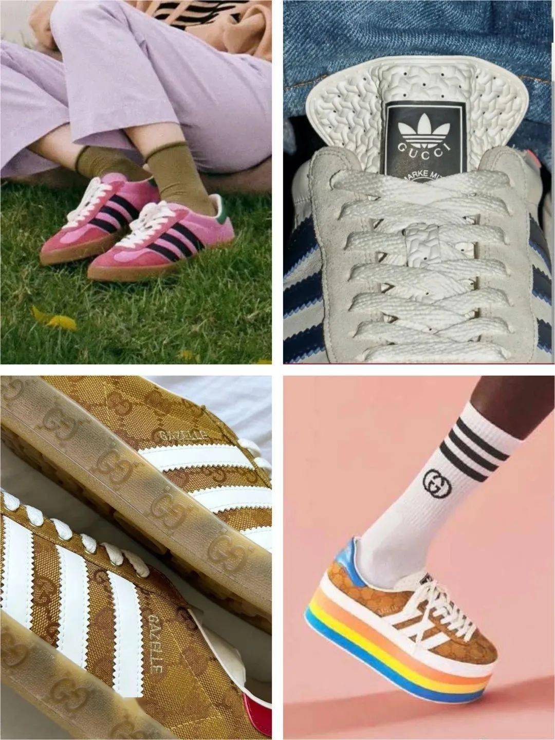 联名鞋款上Gucci x adidas Originals也是做到了生动有趣。选择GAZELLE鞋款作为联名原型,以麂皮拼接、金属皮革、仿蛇皮纹、印花帆布、天鹅绒等不同材质发明全新容颜,这系列的联名鞋款也是日常穿搭中适用且出挑的选择。