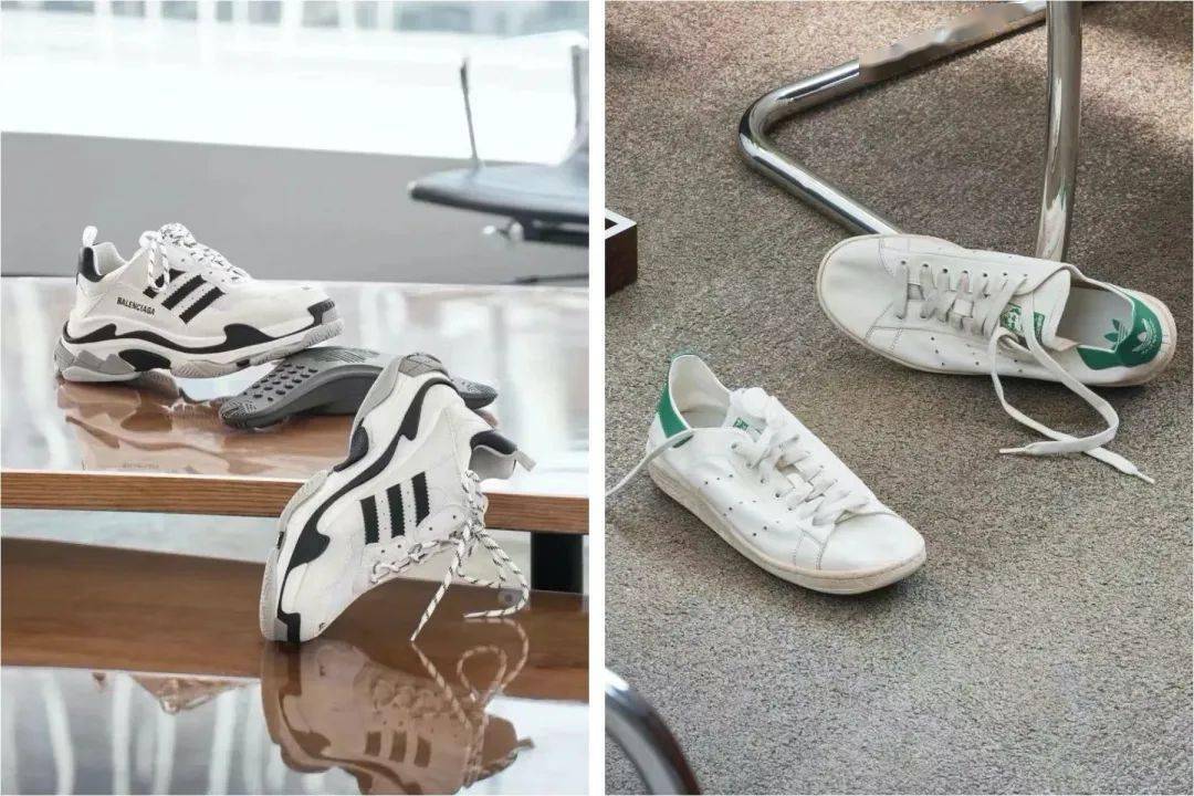(左右滑动查看更多) 联名鞋款分别以Balenciaga抢手的TRIPLE S和Speed Trainer,以及adidas经典的Stan Smith作为底本,在鞋身或鞋尾的中央做了联名的标识改动。